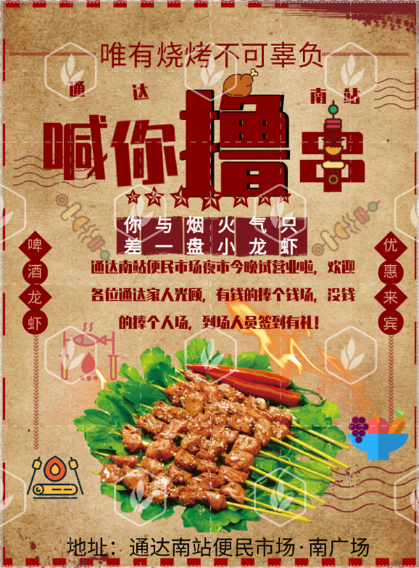 | 通達(dá)南站便民市場(chǎng)夜市——喊你擼串 |