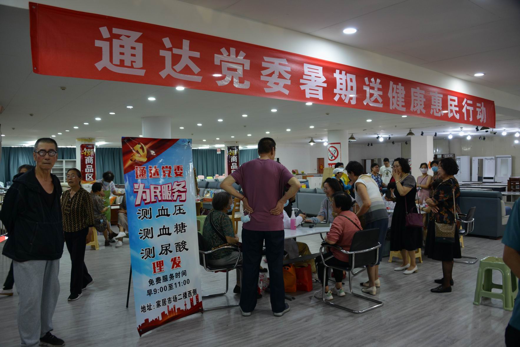 7月18日上午通達(dá)公司黨委組織善愛(ài)之舟關(guān)愛(ài)長(zhǎng)者志愿會(huì)開展了一場(chǎng)以“通達(dá)黨委暑期送健康惠民行動(dòng)”為主題的志愿服務(wù)活動(dòng)。在南站家具市場(chǎng),志愿者們?cè)缭鐚⒒顒?dòng)場(chǎng)地布置妥當(dāng),為周邊的老百姓提供測(cè)血壓、測(cè)血糖、測(cè)尿酸、理發(fā)等公益性志愿服務(wù)。志愿者們用她們的熱心與愛(ài)心,如一縷清風(fēng)般為本以炎熱的天氣帶來(lái)了一絲清涼。