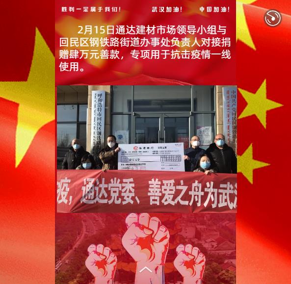 內(nèi)蒙古通達實業(yè)股份有限公司在此次新型冠狀病毒肺炎疫情期間共對接7個政府部門進行愛心物資專項捐贈活動,為在防控疫情一線的志愿者們累計捐贈20萬元。