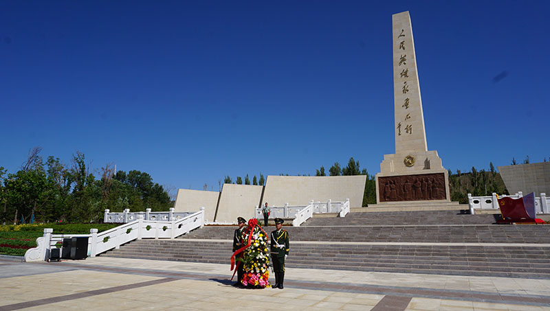祭奠人民英雄儀式,全體人員脫帽,為烈士默哀。。