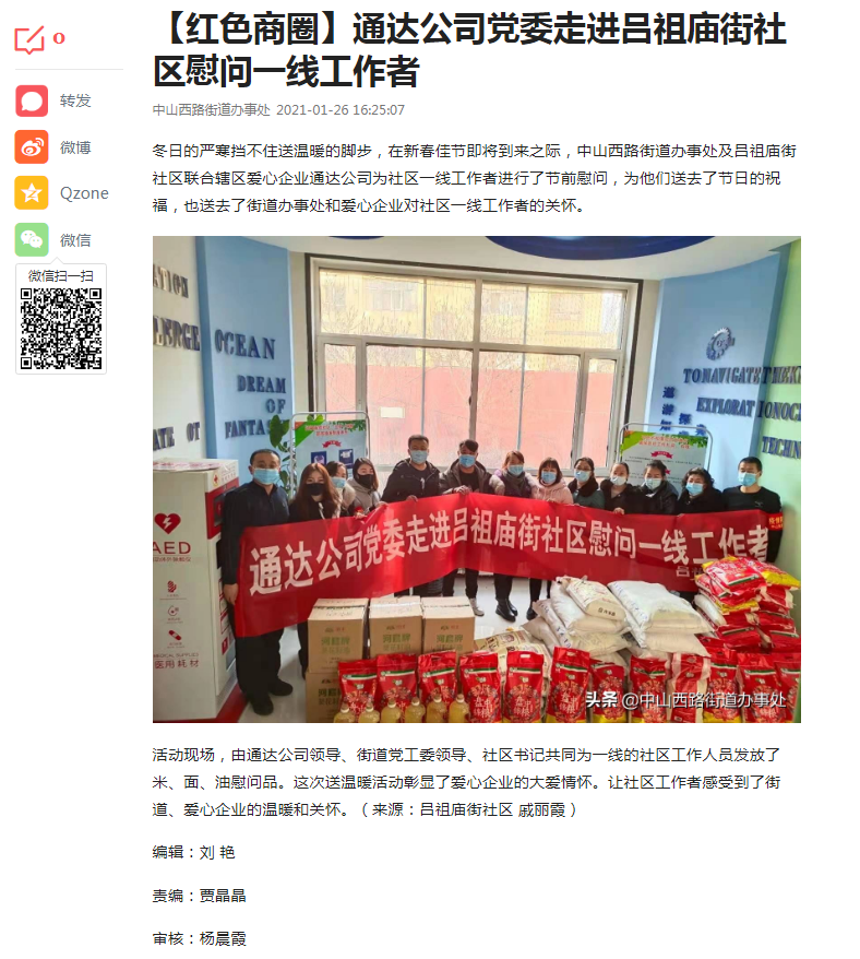 | 【紅色商圈】通達(dá)公司黨委走進(jìn)呂祖廟街社區(qū)慰問一線工作者 |